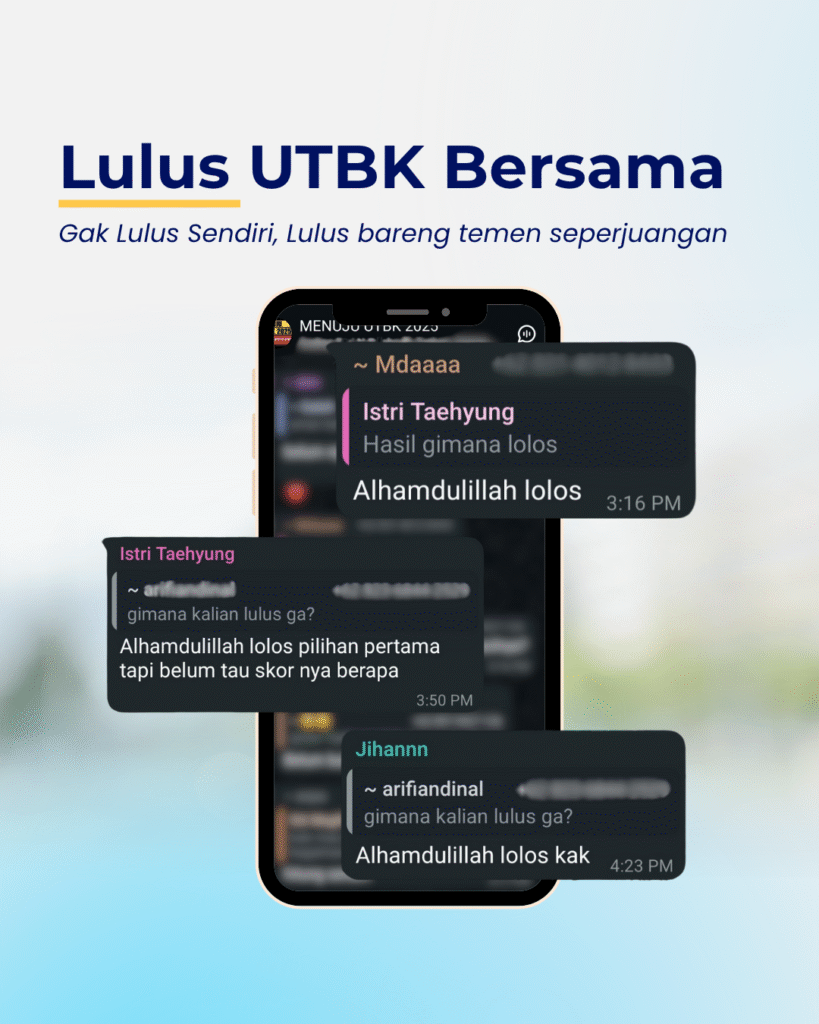 Langsung denger cerita dan tips dari kakak-kakak yang udah lolos ke kampus impian. Biar kamu nggak cuma siap akademik, tapi juga mental dan strategi!