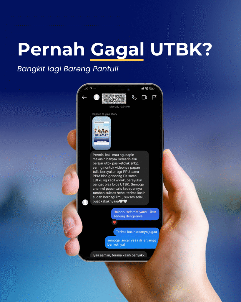 Pantul adalah gerakan belajar bareng dari Papan Tulis, yang fokus membantu siswa mempersiapkan diri menghadapi SNBT dan seleksi masuk perguruan tinggi lainnya — dengan materi lengkap, strategi terarah, dan bimbingan dari mentor berpengalaman.