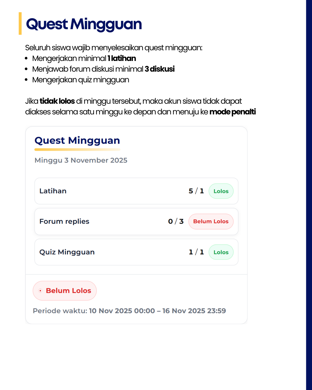 Setiap minggu sekali akan ada try out rutin yang penilaiannya real time untuk mengetahui progres kamu.